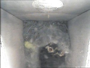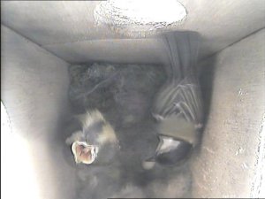 Last picture of the 2 chicks together. Shortly after this the larger chick left the nest